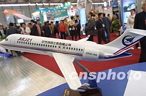 七日,由中航商用飛機(jī)有限公司研制的新一代支線飛機(jī)ARJ21亮相上海工博會,ARJ21是為滿足高原地區(qū)飛行條件而設(shè)計的,但同樣可以勝任平原地區(qū)的客運(yùn)工作,它的出現(xiàn)將能改變目前支線航線難以盈利的難題。作者:湯彥俊