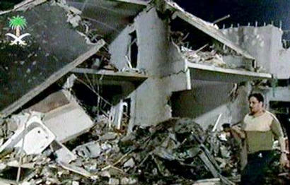 圖:沙特首都發(fā)生三起連環(huán)爆炸 房屋被摧毀