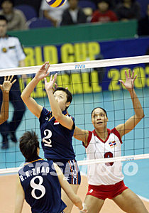 在評估了對手的實力之后,中國女排今天并沒有遣上全部主力,此前每場首發(fā)的周蘇紅和王麗娜只在場邊作壁上觀。盡管阿根廷隊曾在第二局和第三局都曾有過比分領(lǐng)先的階段,該隊十號隊員的發(fā)球和強攻,以及阿隊特有的手足并用,也都有過不俗表現(xiàn),但綜觀整個比賽,中國隊始終牢牢控制了場上形勢,毫無險情地維持到了終場勝局。