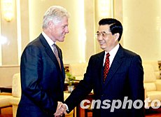 圖:胡錦濤會(huì)見(jiàn)美國(guó)前總統(tǒng)克林頓