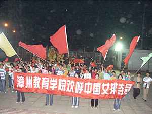 福建漳州是中國(guó)女排的集訓(xùn)基地。中國(guó)女排自一九七六年在排球之鄉(xiāng)漳州組建后,每年都要到漳州進(jìn)行集訓(xùn)。二十七年來(lái),無(wú)論是在中國(guó)女排處于起步之時(shí),還是走向輝煌時(shí)期,或是陷入低谷階段,漳州人民對(duì)于中國(guó)女排姑娘都給予了無(wú)微不至的關(guān)心與支持。對(duì)此,中國(guó)女排姑娘親切地把漳州稱為自己的“娘家”。