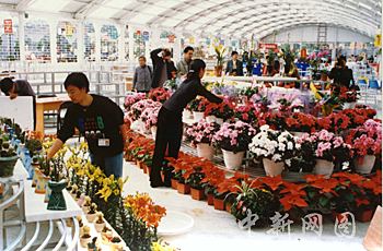 圖:花博園花卉交易紅火 花卉展廳一萬平方米