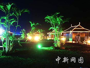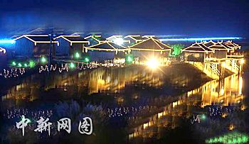 投資100萬元的花博會夜景工程日前竣工。圖為花博園濱溪茶文化走廊夜景。蔡文原攝