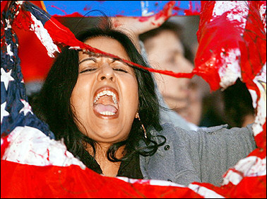 首先,“歡迎”規(guī)格創(chuàng)新紀錄。布什未動,在英國有很多人已提前動起來了:1.4萬名警察嚴陣以待,數(shù)十萬反戰(zhàn)人士整裝待發(fā)。這樣的陣容恐怕是當時的里根總統(tǒng)難以企及的。自“9·11”事件以來,身為“反恐旗手”的布什理所當然地成為恐怖分子打擊的目標,英國方面的“如臨大敵”也就順理成章了。反戰(zhàn)人士的游行估計也在布什的預料之中,畢竟伊拉克戰(zhàn)爭目前的狀況實在很難讓人與“勝利”聯(lián)系起來,這就使得原先不得人心的伊拉克戰(zhàn)爭更加站不住腳了。其次,“不歡迎”程度也創(chuàng)新紀錄。盡管與里根訪英一樣,包括國宴在內(nèi),布什此行有兩次和女王共宴的機會,他也將會見布萊爾。略有遜色的是,這次英國國會沒有邀請他演講。也許,英國國會這樣不給面子正是為了保全布什的面子(如果演講時下面聽者寥寥或噓聲不斷,美英誰的臉都會掛不住),但是由他到訪所引起的反戰(zhàn)浪潮卻是當時身處冷戰(zhàn)對峙的里根總統(tǒng)動員不起來的。