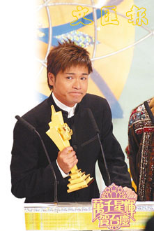 而“我最喜愛(ài)的男主角”一獎(jiǎng)中,賽前穩(wěn)操勝券的郭晉安眾望所歸,憑借對(duì)《憨夫成龍》里“阿旺”一角的出色表演奪獎(jiǎng)。領(lǐng)獎(jiǎng)時(shí)刻他激動(dòng)地感謝17年來(lái)支持他的人。郭晉安特別表示﹕“當(dāng)任何人都不相信我有機(jī)會(huì)站在頒獎(jiǎng)臺(tái)做男主角時(shí),很感謝梁家樹(無(wú)線戲劇組高層)給予我信心。”
