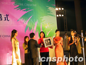 世界小姐機(jī)構(gòu)的主席朱莉婭·莫莉與第五十二屆世界小姐阿金,首先步下舷梯;曾經(jīng)在二00一、二00二年代表中國(guó)參加世界小姐總決賽獲得名次并獲得“亞洲美皇后”稱號(hào)的中國(guó)美女李冰、吳英娜,仿佛歸隊(duì)般將鮮花送到了“美麗同仁”的懷中。