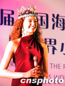 上百名海南兒童向佳麗獻(xiàn)花,并手牽手將美人引入椰風(fēng)海韻中。一位小男孩流露出的幸福笑容,令許多男士羨慕不已。佳麗們風(fēng)情萬種,有的向歡迎的人群微笑揮手,有的不停飛吻,有的將手中的小禮物送給了海南的小學(xué)生,有的走進(jìn)人群與渴望美麗的人們合影……美麗帶來的瘋狂感染著每一個(gè)人。
