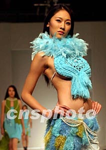浙江工程學(xué)院國(guó)際時(shí)裝技術(shù)學(xué)院學(xué)生錢麗霞的作品《漣漪》二十三日在北京獲得第二屆中國(guó)針編織時(shí)裝設(shè)計(jì)大賽頭獎(jiǎng)。中新社記者:史利