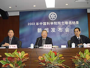 中國科學院院長路甬祥介紹說,根據《中國科學院院士章程》的規(guī)定,中國科學院院士增選每兩年進行一次,2003年增選名額為60名。經國務院有關部委、直屬機構,中國人民解放軍四總部,各省、自治區(qū)、直轄市和中國科協(xié)等歸口初選部門的推薦和院士推薦,共產生有效候選人309名。院士們經過充分討論、全面評審,最終選舉產生了58名新院士,其中數學物理學部10名,化學部10名,生物學部11名,地學部10名,技術科學部17名。