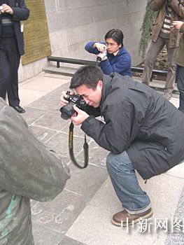 網(wǎng)絡媒體記者拍攝“歷史證人的銅版腳印”。作者:玉樹