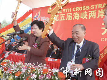 全國政協(xié)副主席張克輝與福建省委副書記、省紀委書記梁綺萍女士,在第五屆海峽兩岸(福建漳州)花卉博覽會開幕儀式上,共同轉(zhuǎn)動此次盛會的金鑰匙。蔡文原攝