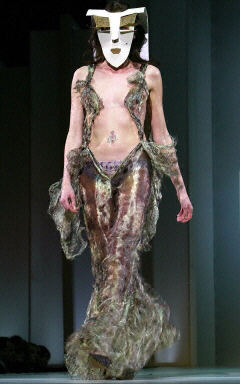 在莫斯科時(shí)裝周上,模特顯示了俄羅斯設(shè)計(jì)師Natasha Drigant設(shè)計(jì)的另類世上時(shí)裝。