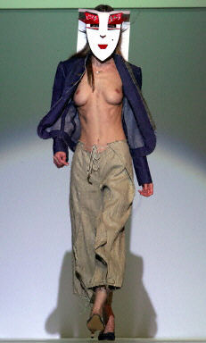 圖:中國(guó)國(guó)際時(shí)裝周上提醒預(yù)防SARS的時(shí)裝