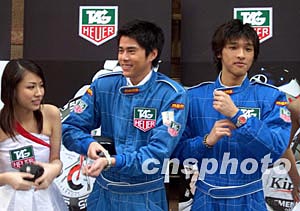 香港流行音樂(lè)組合Shine,三日在時(shí)代廣場(chǎng)出席一品牌腕表記者會(huì)時(shí),獲大會(huì)贈(zèng)送最新款運(yùn)動(dòng)型腕表。中新社記者:譚達(dá)明