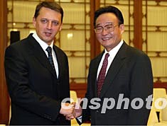 中新社北京十二月四日電(記者張朔)中國全國人大常委會委員長吳邦國今天下午在人民大會堂會見首次訪華的斯洛文尼亞總理羅普時(shí)說,中國新一屆中央領(lǐng)導(dǎo)集體高度重視發(fā)展與斯洛文尼亞的關(guān)系。