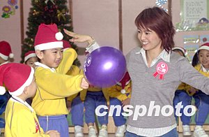 歌星梁詠琪12月8日在香港出席仁濟(jì)醫(yī)院郭子梁幼兒中心探訪活動(dòng),“仁濟(jì)慈善大使”梁詠琪與該中心小朋友一起唱游,并帶備圣誕禮物派發(fā)。作者:鄧慶樂(lè)