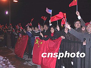 美國國務(wù)院禮賓司司長埃斯納特、安德魯空軍基地空軍準(zhǔn)將格雷、美國國務(wù)院助理國務(wù)卿凱利到機(jī)場迎接。二百多名當(dāng)?shù)厝A人華僑和大使館工作人員也到機(jī)場熱烈歡迎溫家寶總理。