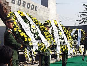 今天,江蘇省暨南京市各界人士,以及部分國外友好團體的代表、友好人士、港臺愛國同胞共3000余人,在侵華日軍南京大屠殺遇難同胞紀念館隆重悼念南京大屠殺30萬同胞遇難66周年,并舉行了南京國際和平集會。作者:丁東升  南京大屠殺幸存者夏淑琴十三日在南京“遇難者名單墻”前指認親人名單。作者:丁梅