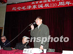 十二月十六日,北京新四軍研究會(huì)在京隆重舉行“紀(jì)念毛澤東誕辰一百一十周年座談會(huì)”,新四軍研究會(huì)會(huì)長(zhǎng)張铚秀將軍(中),副會(huì)長(zhǎng)魯冰將軍(左),副會(huì)長(zhǎng)、中國(guó)人民對(duì)外友好協(xié)會(huì)會(huì)長(zhǎng)陳昊蘇(右)與新四軍所屬各師分會(huì)代表近二百人共同緬懷了毛澤東領(lǐng)導(dǎo)人民驅(qū)逐日寇,建立新中國(guó),開(kāi)拓中華復(fù)興之路的豐功偉績(jī)。作者:徐曦弋