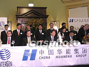 中國華能集團公司成功競標收購美國國際電力公司在澳大利亞的全資子公司奧絲電力百分之五十的股份,總購買價格為2.27億美元。交易雙方于16日在布里斯班正式簽署買賣協(xié)議。中國華能集團公司總經理李小鵬(后排左4)說,此次收購是華能在海外的第一次重大投資。中新社記者 劉雨生 攝