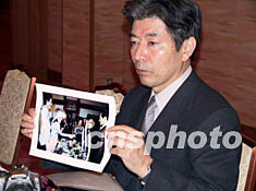 日本業(yè)余攝影師松田定明向中國記者展示二十五年前拍攝的鄧小平出人意料出席日本新人婚禮的獲獎圖片《友好的瞬間》。該圖片獲得一九七八年《讀賣新聞》年度大獎。作者:劉莉生