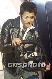 圖:郭富城出席諾基亞7600新款手機(jī)推廣活動