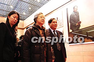 毛澤東女兒李訥(中)與親友十二月十九日在北京國家博物館舉行的“毛澤東檔案展”開幕式上,觀看歷史圖片和百余件毛澤東書信手跡等陳列品。中新社記者:鄒憲