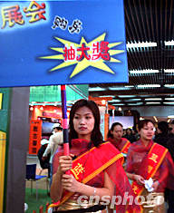 十二月十九日,在北京國貿(mào)中心舉行的冬季房展會上,售房小姐手持“購房抽大獎”的牌子在展廳中穿梭。房地產(chǎn)商希望通過這種方式推動樓盤銷售。作者:張雷