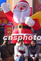 圣誕節(jié)臨近,一個(gè)高大的充氣圣誕老人站立在北京王府井某商場門口。經(jīng)歷了非典創(chuàng)傷的北京商家,希望在年終歲末的消費(fèi)高潮中贏得商機(jī)。中新社記者:張煒