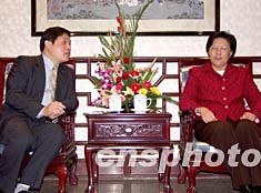 參加“2003香港青年江蘇行”活動的香港特別行政區(qū)立法會主席范徐麗泰,22日到南京航空航天大學(xué)與學(xué)生交流并與校長交流。作者:丁東升