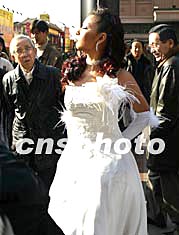 十二月二十三日,北京氣溫繼續(xù)回升,白天最高溫度高達十四攝氏度。一名身著露肩裝的模特在街頭作秀,吸引不少行人駐足觀看。中新社記者:鄭萍萍