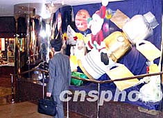 隨著“神舟五號”載人飛船的成功返回,香港也曾掀起一股航空熱。在商場圣誕裝飾中,以圣誕老人乘飛船亦成為香港圣誕裝飾一景。中新社記者:譚達(dá)明