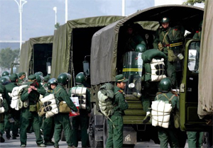 圖:武警開赴“12·2 3”井噴事故搶險(xiǎn)救災(zāi)現(xiàn)場(chǎng)