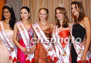 日前,在馬來西亞首都吉隆坡舉行的第八屆國際旅游小姐選美總決賽上共評出五項冠軍,大賽組委會主席向記者闡明,國際旅游小姐選美賽不同其它選美賽事,組委會現(xiàn)持有五項馬來西亞旅游部授權的大賽執(zhí)照,是次大賽由評判團評出的有五項冠軍桂冠,南非的選手ANGELA BECK獲國際旅游小姐冠軍、希臘小姐獲國際旅游年度皇后冠軍、中國選手邢會原獲世界洲際小姐冠軍、阿根廷選手獲夢幻小姐冠軍、捷克選手獲國際名城小姐冠軍。而且經(jīng)授權,國際旅游年度皇后和國際名城小姐兩項賽事,已確定2004年分別在中國舉行。曾于2001年參加該賽的中國佳麗閻巍獲得夢幻小姐冠軍,2002年中國佳麗殷子獲得國際旅游年度皇后桂冠。圖為大賽評選出的獲得不同項目的五名冠軍得主。中新社記者:錢興強