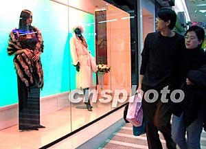 元旦過(guò)后春節(jié)將至,北京一些商家為了吸引了顧客周日在櫥窗里上演真人模特秀。作者:張雷