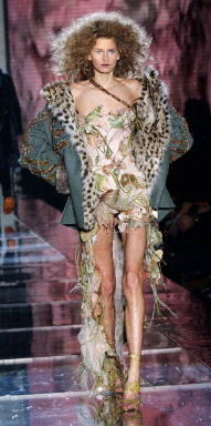 1月11日,2004/2005年意大利米蘭秋冬時裝展開場,本次時裝展將在本月15日結(jié)束。圖為模特展示設(shè)計師Roberto Cavalli的作品。