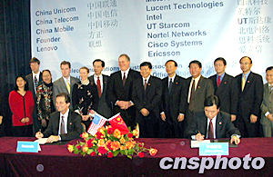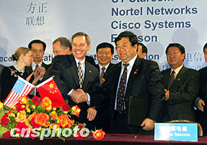 由中國信息產業(yè)部、國家發(fā)改委、商務部、外交部官員組成的中國政府經貿代表團同時在美國訪問,并出席了當天的簽字儀式。