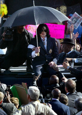 美國東部時(shí)間1月16日上午11時(shí)30分(北京時(shí)間1月17日0時(shí)30分),美國流行天王邁克爾·杰克遜猥褻兒童一案的法律聽證會在加州圣芭芭拉縣法院如期舉行。有成千上萬名杰克遜的歌迷、獵奇者和來自世界各地的新聞記者前往圍觀助陣。近百家媒體將小鎮(zhèn)圍得水泄不通。