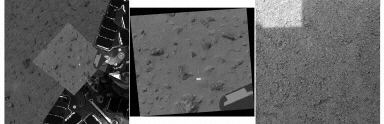 這是美國“勇氣”號火星車開上火星表面后拍下的火星表面土壤的近距離合成照片。