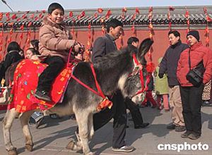 農(nóng)歷新年伊始,北京白云觀廟會(huì)上人頭攢動(dòng),一派熱鬧景象,許多兒童騎著小毛驢逛廟會(huì),別有一番情趣。幾百年來(lái),騎驢逛白云觀廟會(huì)一直是這里的一大特色。中新社記者:張煒