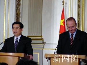今天是中法建交四十周年紀念日,正在法國進行國事訪問的中國國家主席胡錦濤和希拉克在巴黎進行了正式會談,會談后雙方簽署了“中法聯(lián)合聲明”。該聲明強調(diào),中法兩國將深化全面戰(zhàn)略伙伴關(guān)系,致力于建立更加安全、更加尊重多樣性和更加團結(jié)的世界。
