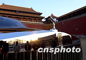 一輛至尊級(jí)的勞斯萊斯轎車在中國(guó)農(nóng)歷新年時(shí)現(xiàn)身北京故宮前,引得眾人圍觀。此車已為一位中國(guó)年輕的私營(yíng)企業(yè)家重金購(gòu)得。中新社記者:賈國(guó)榮