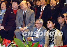 二月五日是農(nóng)歷元宵節(jié)。晚上,二百多位紐約僑胞聚集在中國駐紐約總領(lǐng)館,看文藝表演,品嘗元宵。圖為《曼哈頓的中國女人》的作者周勵(lì)(右一)席地而坐,與友人們欣賞內(nèi)地藝術(shù)家演唱的中國民歌《一條大河》。中新社記者:陳建