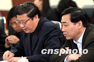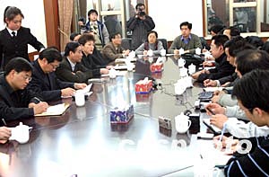 二月八日晚,北京市密云縣就元宵節(jié)發(fā)生的特大踩擠事故舉行新聞媒體通氣會,中共密云縣縣委書記夏強(右),縣長張文(左)在通氣會上向記者介紹事故發(fā)生當晚的情況、傷者救治情況以及死亡人員的善后處理情況。中新社記者:盛佳鵬