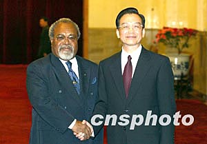 組圖:溫家寶會見巴布亞新幾內亞總理索馬雷