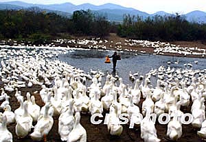 據(jù)中央電視臺(tái)報(bào)道,在采訪(fǎng)團(tuán)去南寧當(dāng)?shù)刈畲蟮囊粋(gè)種雞場(chǎng)途中,幾名記者突然發(fā)現(xiàn)路邊有成群的鴨子,數(shù)量可能超過(guò)一千只。大家要求停車(chē)并進(jìn)行了拍攝。