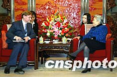 國務(wù)院副總理吳儀十二日在北京會見美國貿(mào)易代表佐利克。中新社記者:滿會喬