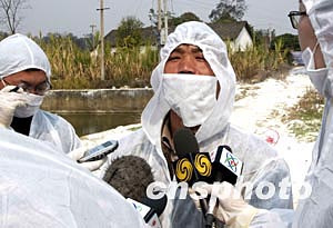 中外十四名記者,十二日深入中國內(nèi)地首發(fā)禽流感疫點--隆安縣丁當電灌站采訪。中新社記者:宋吉河