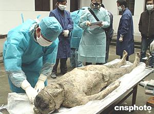 二月二十日,江蘇省常州市博物館會(huì)同南京市博物院、蘇州博物館等專家對(duì)日前常州發(fā)現(xiàn)的明代古尸做了進(jìn)一步鑒定。作者:建軍衛(wèi)東