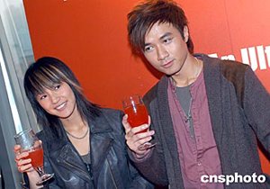 歌星何韻詩、古巨基2月20日在香港出席雜志《HMC》記者會,兩人即場客串調(diào)酒師,古巨基將它命名“大紅燈籠高高掛”。作者:鄧慶樂